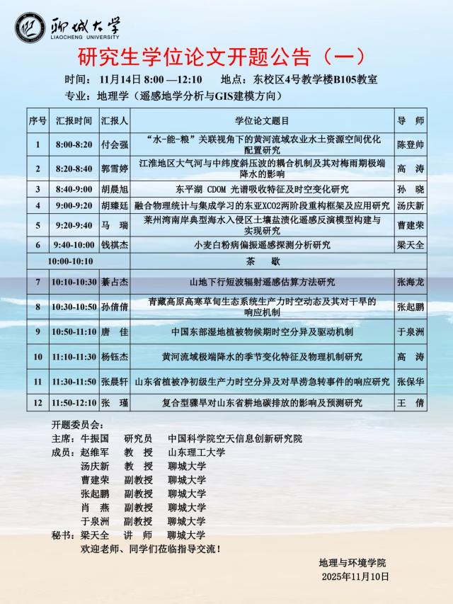 suncitygroup太阳集团 研究生学位论文开题公告(一)