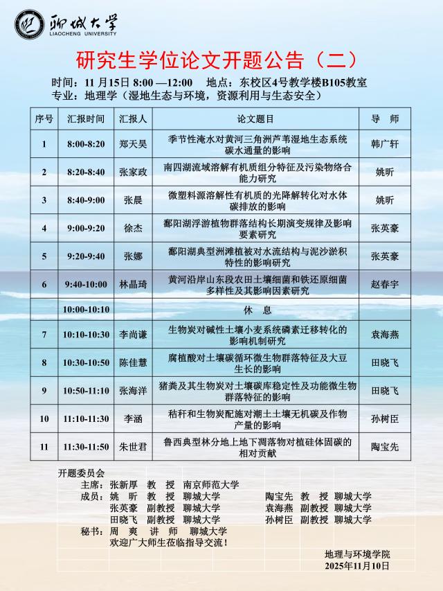 suncitygroup太阳集团 研究生学位论文开题公告(二)