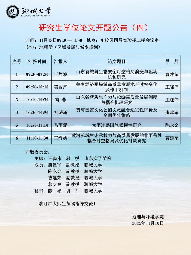 suncitygroup太阳集团 研究生学位论文开题公告(四)