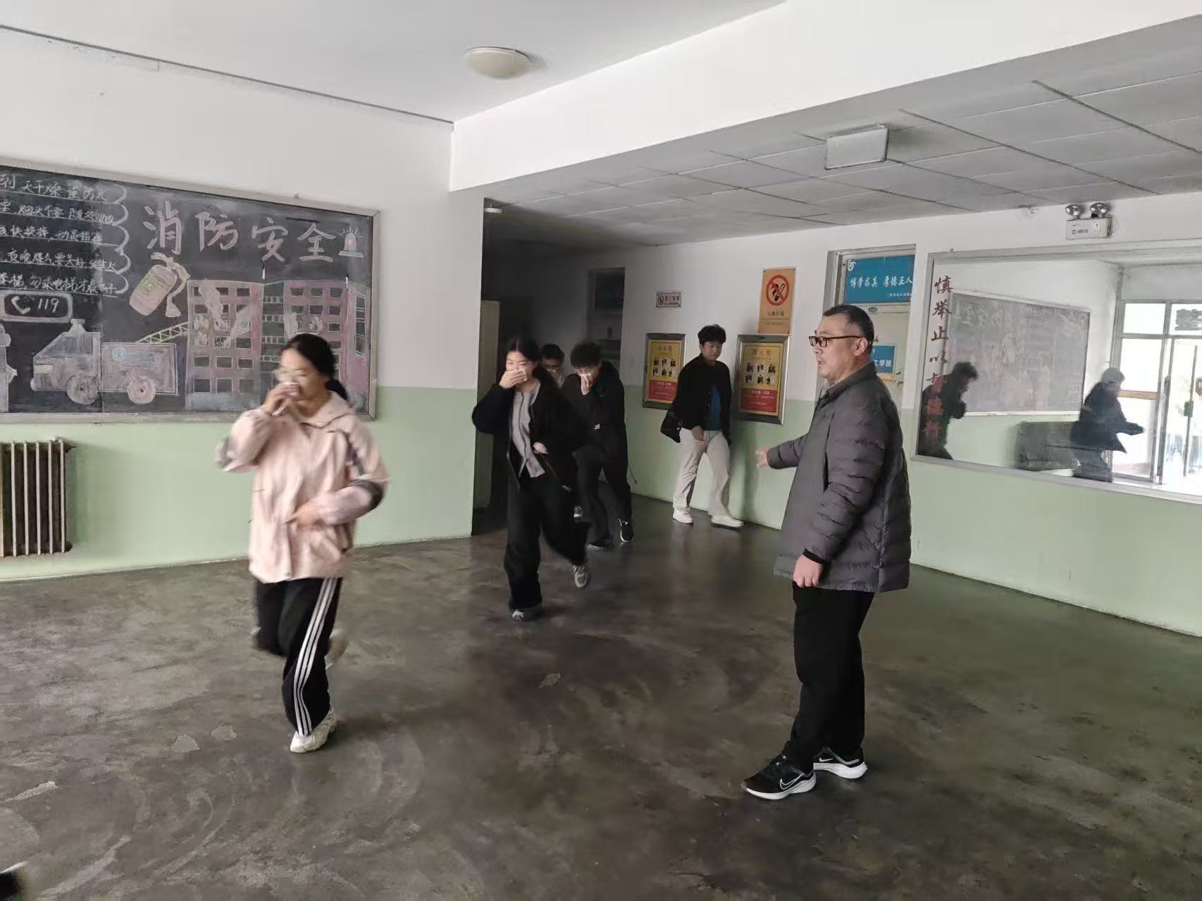 随着火灾警报的响起,消防演练随之开始,警报一响,同学们反应迅速,用湿毛巾或打湿的袖子捂住口鼻,压低身子弯腰前行,行动有序,成一路下楼,按照规划好的逃生路线撤离到楼下安全地点并集合,整个过程的紧张但不混乱,体现了同学们对于消防相关知识及火灾逃离路线的熟练掌握,演习结束后,学院党委副书记副院长张福善和活动负责人对活动进行了总结,进一步增强了同学们的消防安全意识。